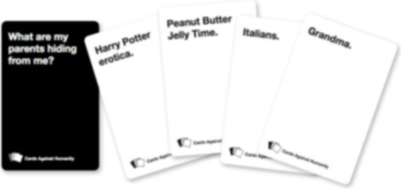 Cards Against Humanity is a party game for horrible people. This game is strictly for adult. The basic of the game is simple you deal out about 7-10 white answer cards to each player 1 person draws a black.